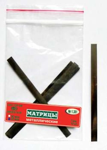 Металлические матрицы 1.381 прямоугольной форы из прочной коррозиестойкой стали толщиной 35 мкм предназначены для контурирования пломб при реставрациях 2-го класса. Удобная форма и размеры 7 на 100 мм обеспечивают комфортную работу.